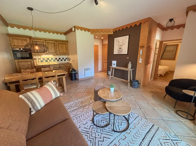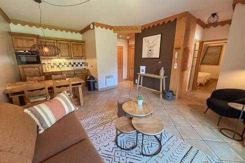 Discover this 55.4 m2 furnished apartment in a premium residence with indoor pool, spa, sauna, hammam, and gym, located in the charming village of Champagny-en-Vanoise.