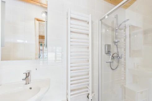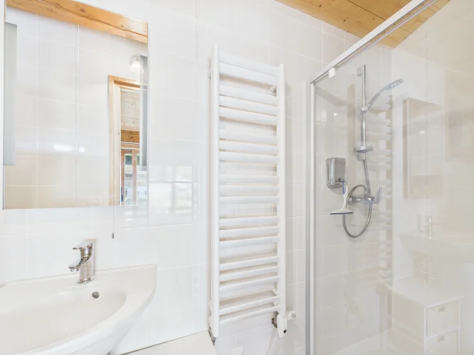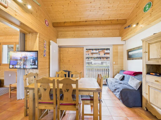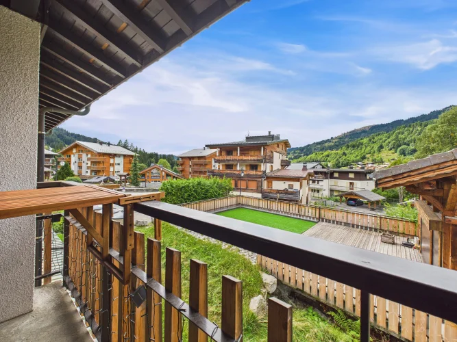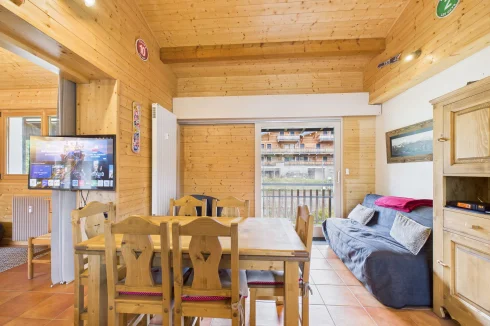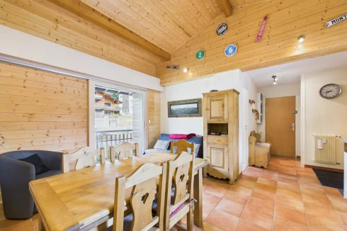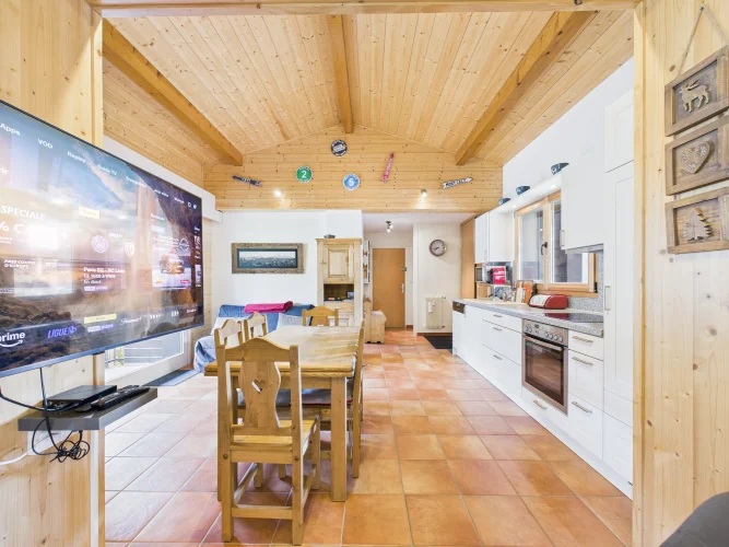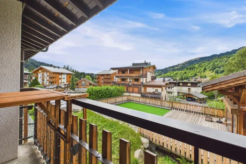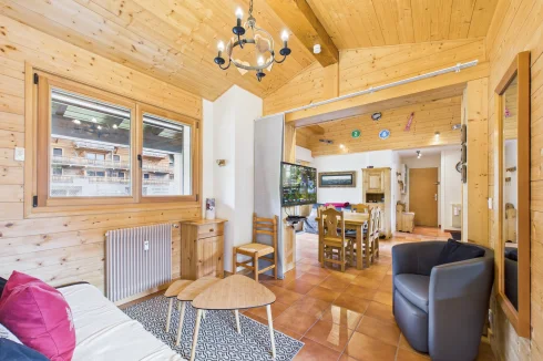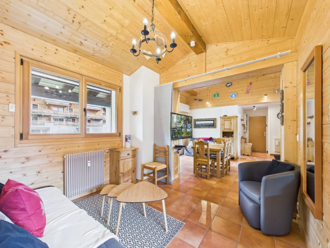 The apartment is sold with a dedicated, covered parking space, a storage cave and a ski locker. It has two bedrooms (one with a private bathroom), a second bathroom, a main living room with a kitchen to one side and a second, smaller living room. There are balconies on both side of the property so that one can choose the best spot for taking in the sunshine and fresh air.