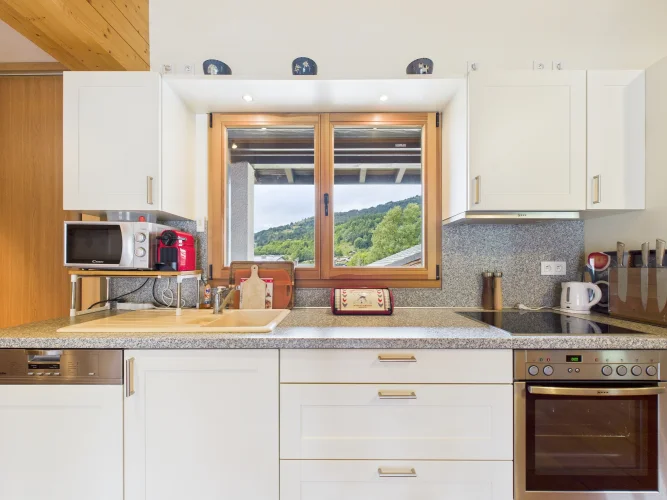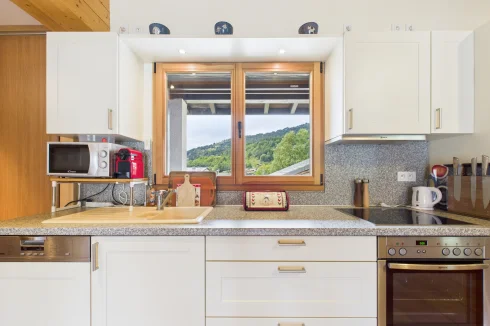 This is a very nice apartment, situated close to the slopes and the village centre, and it has a nice balcony on either side offering interesting views in all directions.