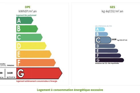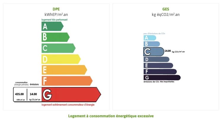 Energy rating (DPE): G. Logement a consommation energetique excessive: classe G.