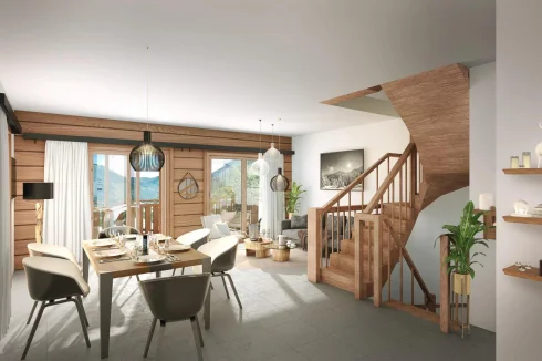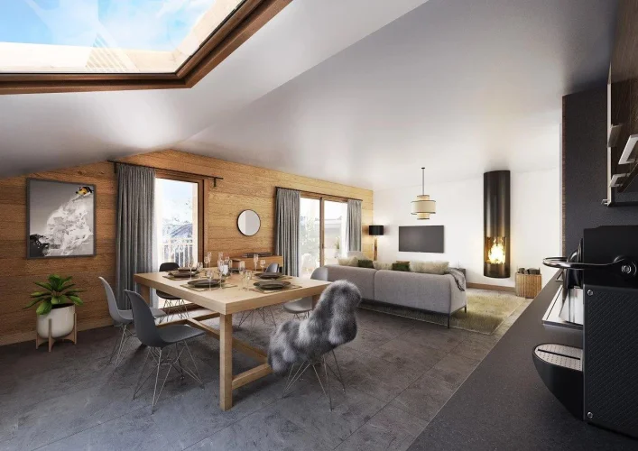 2 bedroom duplex apartment and a mountain corner in a chalet. Panoramic view on the valley. Snow Roc, our new mountain residence in the heart of the Portes du Soleil, offers beautiful, cosy flats in 3 buildings and 4 independent chalets facing the slopes and Roc d'Enfer. Nestling right in the heart of the mountains, between Mont Blanc and Lake Geneva, the world of Snow Roc combines charm and authenticity. Using the finest materials, the residence will win you over with its warm, modern feel. In addition to their optimised, functional layout, all the chalets have balconies or terraces so you can enjoy the magnificent views over this beautiful village. Located at the foot of the slopes and at the start of the main Roc d'Enfer ski lift, you're within easy reach of a wide range of cultural, sporting and family activities. Local developer Laurent Bailet offers you his latest creation in a unique setting at an altitude of 1000 metres, with accommodation facing the ski slopes and the typical village of Saint Jean d'Aulps, ski-in, ski-out.