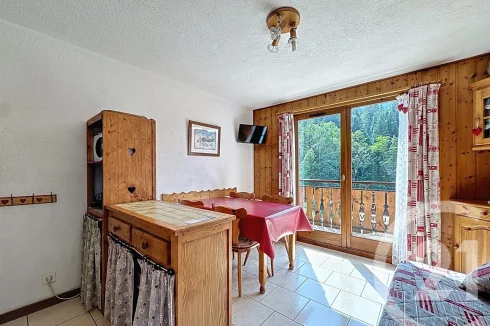 Located in the heart of the Portes du Soleil and at the foot of the Nyon cable car, this charming duplex apartment is the perfect alpine retreat for ski or mountain bike enthusiasts. Just step out of the well-maintained residence and jump on the telecabine and access the stunning ski areas of Morzine and Les Gets. You can get back on your skis! The layout of this apartment is well-designed and functional, with plenty of storage space. It comfortably accommodates 4 to 6 people. The bright living area opens onto a lovely balcony. The view of the slopes and forest, combined with the soothing sound of the nearby Dranse river, creates a truly pleasant environment. Upstairs, you will find two bedrooms nestled under the eaves. One with a double bed and one with bunk beds. These living spaces are completed by a bathroom and separate toilet. Sold fully furnished, with a private cave and underground garage, this apartment represents an excellent investment whether as a second home or a rental property all year round. Skiers, hikers, and mountain bikers can enjoy the area . The centre of Morzine village is easily accessible, either via the nearby free shuttle or on foot along the charming Chemin du Renard, which follows the Dranse river.