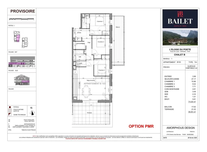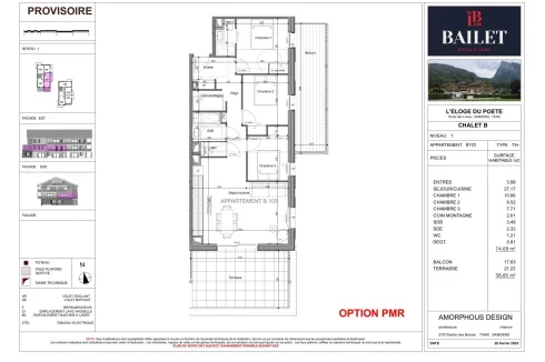 Beautiful apartment of 3 bedrooms + a mountain corner. Other lots and floor plans are available on request. Only 25 minutes from the A40 freeway linking Geneva and Chamonix, the village of Samoëns, a true haven of peace, is alive and kicking all year round thanks to its outdoor activities, local shops, school, doctor?s surgery, restaurants and Wednesday morning market. In 2021, this charming village was voted the most beautiful village in Haute-Savoie ! Living in this little corner of paradise is an opportunity not to be missed. It is in the heart of the Alps, in Haute-Savoie, that the Grand Massif slopes are revealed, between mythical spots, 40,000 hectares of forests, powder snow and grandiose views of the Arve Valley, the Aravis Massif, the Jura mountains up to Lake Geneva without forgetting the Mont-Blanc. Snow is guaranteed to make the most of the 139 trails and 62 lifts spread over 265 kilometers of trails that this area offers between 700 and 2,500 m altitude. This vast domain, which retains its simplicity and naturalness, will allow you to enjoy a total change of scenery thanks to its winter sports activities (alpine skiing, snowboarding, cross-country skiing, snowshoeing, biathlon, dog sledding, tobogganing, skating rink, etc.), its summer sports activities (hiking, biking, paragliding, tree climbing, miniature golf on the water, tennis, etc.), as well as its wealth of cultural heritage (chapels, chapels, oratories, and views). Discover an exceptional location : just an hour from Geneva, Chamonix-Mont-Blanc and the city of Annecy, L?Eloge du Poète is situated in the heart of the Grand Massif. L?Eloge du Poète is ideally located : Close to a school 10-minutes? walk from Samoëns town center 10-minutes? walk from the cable cars 3 minutes? walk from the free shuttle bus to the slopes 15-minutes? walk from Lac aux Dames and its leisure center So you?ll be free to leave your car in the parking lot if you like and enjoy the fresh mountain air ! By owning an apartment in our new residence, you?re choosing an exceptional ski area, and you?ll enjoy your apartment in all 4 seasons, thanks to its many activities. In summer, enjoy magnificent hikes between forests and mountain pastures? The mountains just a stone?s throw from your home? A real treat, isn?t it ? You?ll be able to enjoy the freedom of the paths and trails, as well as the splendid hikes around the surrounding lakes. In an exchange with the plot?s previous owner, we learned that Jean-Alfred Mogenet, a writer and poet from Samoëns, was one of his forebears and had lived on the family farm we?re rehabilitating, where he found inspiration and wrote his verses! One of his descendants, Rémi Mogenet, himself a literary man and poet, paid tribute to him in a book about his work. Jam?S poems, as he called himself, were written in the local dialect and expressed the events of his daily life, the peasant life of his time. Listening to this beautiful story, drawn from the local heritage and the land of this parcel, we wanted a name that would recall his talent and thus praise this distinguished village poet. The Bailet Group offers you top-of-the-range apartments facing Mont Criou, the ski resort?s emblematic peak. In addition to their optimized, functional layout, the apartments offer balconies or terraces so you can enjoy the stunning view. At the entrance, our interior designer will design the common areas, including porcelain stoneware tiling (to facilitate cleaning of areas used by bikes, skis, etc.) and decorative wall coverings. Wood or aluminum joinery, security glazing with videophone connected to each apartment (opening by code and badge, so you don?t have to take off your ski gloves, for example?). Have you always imagined your own little corner of paradise in the heart of the lively village of Samoëns ? Groupe Bailet can make it happen ! What better way to feel at home than to create the home you?ve always dreamed of ? Modifiable partitions, additional rooms, customizable kitchens, fully-equipped bathrooms and a wide choice of top-of-the-range materials? We?ll be happy to advise you and listen to your ideas to make your apartment the place you?ve always dreamed of ! The homes on offer, from a studio to 3 bedroom + Mountain Corner, are fully equipped and include top-of-the-range amenities with low-energy performance in line with the latest Re 2020 regulations. The apartments perfectly combine the spirit of the chalet with the modernity of the latest fittings. Authentic mountain style with wooden interior doors, smooth painted walls in all rooms, wood cladding on one wall of the living room, full-height earthenware tiles on the shower/tub walls and vanity unit, 60x60 cm tiles in the living room and glued parquet flooring with solid wood veneer in the bedrooms. Closets with imitation-wood sliding doors including interior fittings, Tv socket in living room and master bedroom. Fully fitted and equipped kitchen, functional bathrooms with thermostatic taps, chrome mixer tap and hand shower, vanity unit and illuminated mirror, electric towel dryer, wall-hung Wc with double expansion tank, humidity-sensitive single-flow ventilation. All apartments have one or two parking spaces, a cellar and a ski room equipped with boot warmers. The heating system and hot water production will be connected to the Samoëns district heating network. Hydraulic underfloor heating is planned in all the apartments. Attic apartments will be fitted with a metal flue for connection to a future wood-burning stove.
