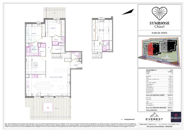 Incredible 4 bedroom top-floor flat with jacuzzi on the terrace ! Discover Symbiose, your new residence in the heart of the village of Châtel ! Treat yourself to a new home in the heart of the village of Châtel, in a rare location that combines peace and quiet with panoramic views. The location is ideal : shops and restaurants are plenty and just a few minutes away on foot, the aquatic centre is a stone's throw away and the ski bus picks you up at the foot of the chalets. The flats combines spacious and bright living areas with large sunny terraces offering superb views of the Portes du Soleil summits. Each apartment has been carefully designed to create a warm and cosy atmosphere, perfect for relaxing with family or friends after a day on the slopes. From 1 bedroom to 6 bedroom + cabin, your elegant and authentic apartment is waiting for you. The price includes one or more garages, a cellar and ski storage. The residence is actually under construction which offers you major benefits as notary fees reduced from 8% to 2.5%. It also allow you to personnalized your apartment. Groupe Bailet, developer since 1979, is well-known and reputed for its clients service and relation. The dedicated team accompany you during your purchase journey, to design your unique apartment according to your needs and vision. You would like to combine your holliday home with a profitable investment ? We assist you on getting your 20% Vat rabat on your purchase price and on renting out your apartment during your absence.
