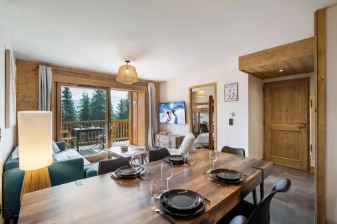 Come and discover this superb two-bedroom apartment, ideally located in the sought-after La Forêt neighborhood in Les Saisies. This modern apartment features a spacious living area with a fully equipped open kitchen, two bedrooms, a shower room, and a bathroom. You will also enjoy the large south-facing balcony, perfect for sharing warm, friendly moments with family or friends.
