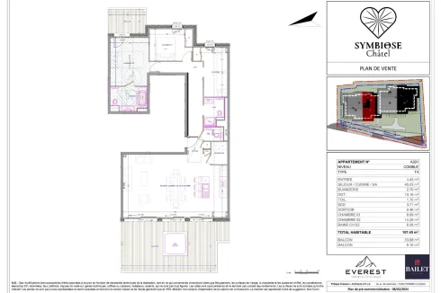 Incredible 3 bedroom top-floor flat with jacuzzi on the terrace ! Discover Symbiose, your new residence in the heart of the village of Châtel ! Treat yourself to a new home in the heart of the village of Châtel, in a rare location that combines peace and quiet with panoramic views. The location is ideal : shops and restaurants are plenty and just a few minutes away on foot, the aquatic centre is a stone's throw away and the ski bus picks you up at the foot of the chalets. The flats combines spacious and bright living areas with large sunny terraces offering superb views of the Portes du Soleil summits. Each apartment has been carefully designed to create a warm and cosy atmosphere, perfect for relaxing with family or friends after a day on the slopes. From 1 bedroom to 6 bedroom + cabin, your elegant and authentic apartment is waiting for you. The price includes one or more garages, a cellar and ski storage. The residence is actually under construction which offers you major benefits as notary fees reduced from 8% to 2.5%. It also allow you to personnalized your apartment. Groupe Bailet, developer since 1979, is well-known and reputed for its clients service and relation. The dedicated team accompany you during your purchase journey, to design your unique apartment according to your needs and vision. You would like to combine your holliday home with a profitable investment ? We assist you on getting your 20% Vat rabat on your purchase price and on renting out your apartment during your absence.
