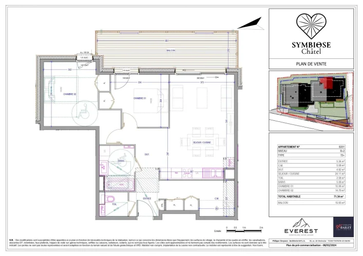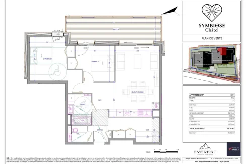 Apartment with 2 bedrooms and a mountain corner. Other lots and floor plans are available on request, with or without mountain corner ! Discover Symbiose, your new residence in the heart of the village of Châtel ! Treat yourself to a new home in the heart of the village of Châtel, in a rare location that combines peace and quiet with panoramic views. The location is ideal : shops and restaurants are plenty and just a few minutes away on foot, the aquatic centre is a stone's throw away and the ski bus picks you up at the foot of the chalets. The flats combines spacious and bright living areas with large sunny terraces offering superb views of the Portes du Soleil summits. Each apartment has been carefully designed to create a warm and cosy atmosphere, perfect for relaxing with family or friends after a day on the slopes. From 1 bedroom to 6 bedroom + cabin, your elegant and authentic apartment is waiting for you. The price includes one or more garages, a cellar and ski storage. The residence is actually under construction which offers you major benefits as notary fees reduced from 8% to 2.5%. It also allow you to personnalized your apartment. Groupe Bailet, developer since 1979, is well-known and reputed for its clients service and relation. The dedicated team accompany you during your purchase journey, to design your unique apartment according to your needs and vision. You would like to combine your holliday home with a profitable investment ? We assist you on getting your 20% Vat rabat on your purchase price and on renting out your apartment during your absence.